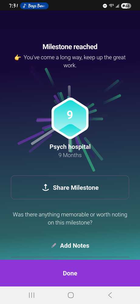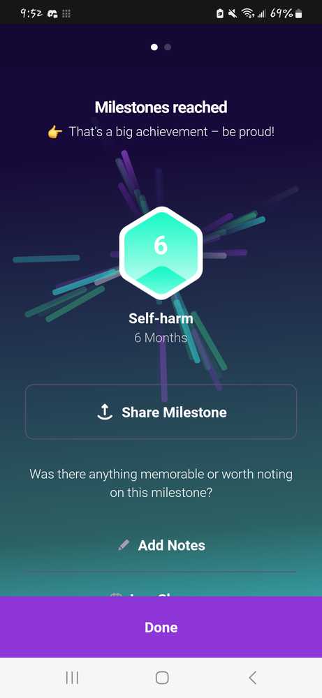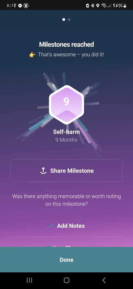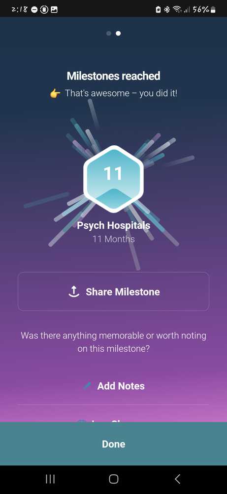 I haven't been keeping this updated very well, I honestly hardly remember to track the app anymore I really have had no trouble with it. But every 6th of the month is a new month self harm free and every 27th is a new month free from psychiatric prisons aka mental hospitals. November 6 I reached ...