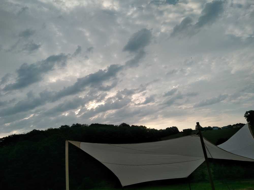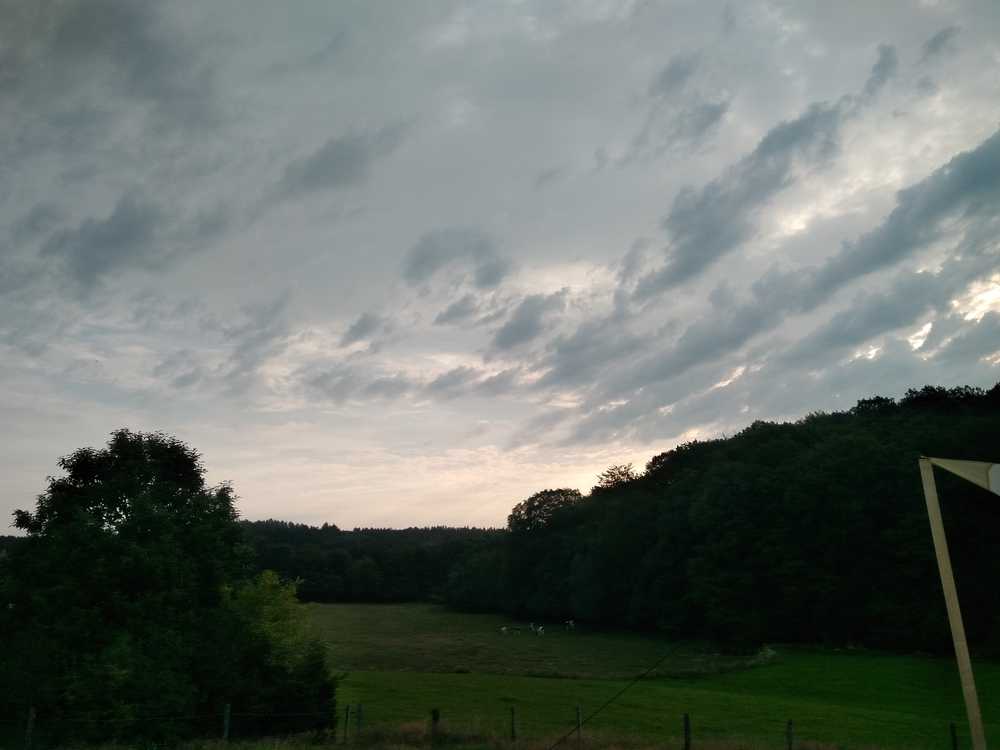 Oh, the weather. I forgot that. It was so warm yesterday, at night and this morning in our house!! But when I went outside - this time without a jacket - there were some clouds and it was a bit cool, really nice. The most part it stayed that way and only got warmer slowly. But on that meadow the position of the sun is... well, it blends a bit. When Christoph told me something while I was sitting there, I couldn't really look at him because of the sun, and had to close my eyes while drinking. Only at the end of the session it got so warm!!! And the clouds disapperaed (?). I was sweating a lot after we had put everything together again...