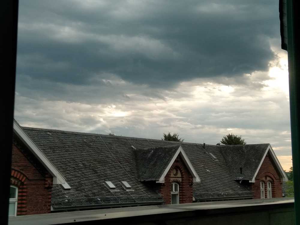 [[[ [Nachtrag: 29:59] Here, that line. At first i thought there was a vertical line somehow but it's a rainbow! Lather the sky got more blue and i saw it again but less red. (I hope that picture is okay? You don't recognize that person in anyway, unless you should be for some reason on my school and had seen him... ]]]