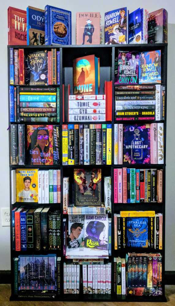 My friend and I put our books together on her new bookshelf. The majority are hers and this is only temporary until I get my own little bookshelf. I thought we did a pretty good just with organizing these guys. :D